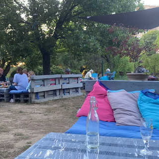 Als ik mijn tent opzet, komt een vrouw met een ezel me tegemoet lopen. Inmiddels vind ik alles best, en ja natuurlijk ze blijkt mijn buurvrouw en de ezel staat tussen ons in. Mijn buurvrouw maakt een voettocht per ezel. En vandaag is de ezel wat uitgeput geraakt door de warmte, dus was ze maar eerder gestopt met wandelen. Al snel blijkt haar ezel ook nog eens de attractie van de camping en het dorp, want kinderen uit de buurt komen allemaal even kijken en aaien. Ik ga even douchen en als ik terugkom is de ezel heerlijk aan het rollebollen op het gras en zet het op een balken. Prima, denk ik. En ik krijg ineens ontzettend zin in cola en in bier. kom maar op met al jullie vragen, ik ben er klaar voor . De camping heeft een fijne restosnack. En daar zit die aardige man nog. Hij kijkt nog steeds twinkelend en heeft zijn tweede crêpe net op. Ik kijk eens goed naar hem en hij heeft opvallend lange nagels. Grappig en gek.. En dan vertelt P. me dat hij in Groningen heeft gewoond en ook Nederlands verstaat, maar liever Duits praat als dat goed is. Ja, tuurlijk. Hij is muzikant, harpist. Hij treedt op in het kasteel van Grignan en hier in de buurt geeft hij morgenavond een concert, voor het eerst sinds de Franse lockdown van oktober. Hij heeft veel opgetreden in Nederland, België , Frankrijk en ook in Brazilië . Hij speelt, zingt en componeert. “ Dat is lang geleden dat ik naar een concert geweest ben” verzucht ik tegen hem. “Kom dan morgen en neem je vriendin mee !” Ik zeg ja, omdat het mij een goed idee lijkt, maar ik weet wel dat ik dan ontzettend veel aan het bijpraten ben met A. Maar ja, je weet nooit. Altijd alle opties openhouden. Dan vertrekt P. Morgenochtend treed hij ook nog op in het kasteel, als ik zin heb. Eerst even slapen. De ezel kijkt verrukt als ik mijn tent in kruip. Snel de rits dicht !