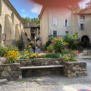 9 uur in de ochtend en ik zit alweer in het zadel. Hop hop hop . Bruno, de eigenaar en beheerder van de Gite (en naar eigen zeggen bekend Wereldfietser) fietst voorop. Voor hem een dagje belachelijk snel omhoog klimmen, voordat ie straks weer zijn Gite moet stofzuigen en dweilen. Voor mij een dagje verder de Ardèche in. Ik ga de boel eens even verkennen. Twee nachten in de Velo Gite van Bruno in Valence is net lang genoeg. Een gite waar ik de ene nacht de jongste van de 10 fietsers ben en de volgende nacht de oudste. Ik bleef een dagje extra om allerlei goede redenen. Maar vandaag op de fiets voelt het weer heerlijk. Ik knijp vaak in mijn remmen om iets dat me raakt te fotograferen, of om een praatje te maken. Vooral oude Franse mannetjes moeten het ontgelden ☺️. Ik trek de Ardèche in. Les Ollieres-sur-Eyrieux zou een bestemming kunnen zijn... een duikje in de rivier misschien. De route die ik tijdelijk volg heet La Dolce Via.